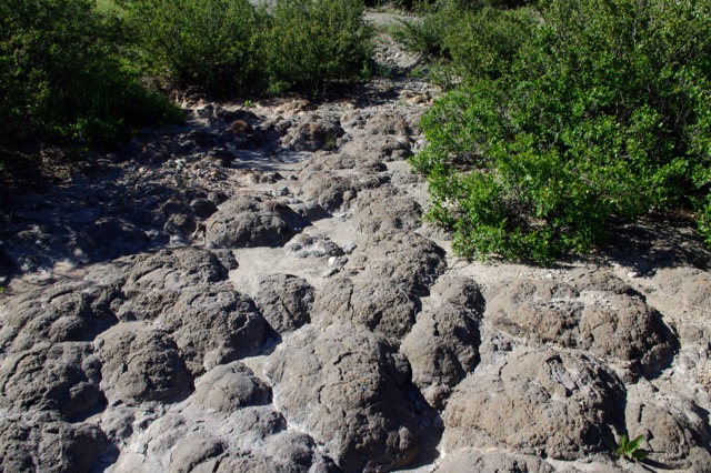 Closer to home in Northern Colorado, these ancient stromatolites form siliceous (resistant) mounds as part of the Jurassic (150 my) Morrison Formation. The larger ‘heads’ are about 1 meter in diameter.Valley margin outcrops feature glacially caused striations. Sand and gravel embedded in Ice Age valley glaciers gouge the underlying rocks in a geologic process that is a mere 10,000 (or a bit older) years old