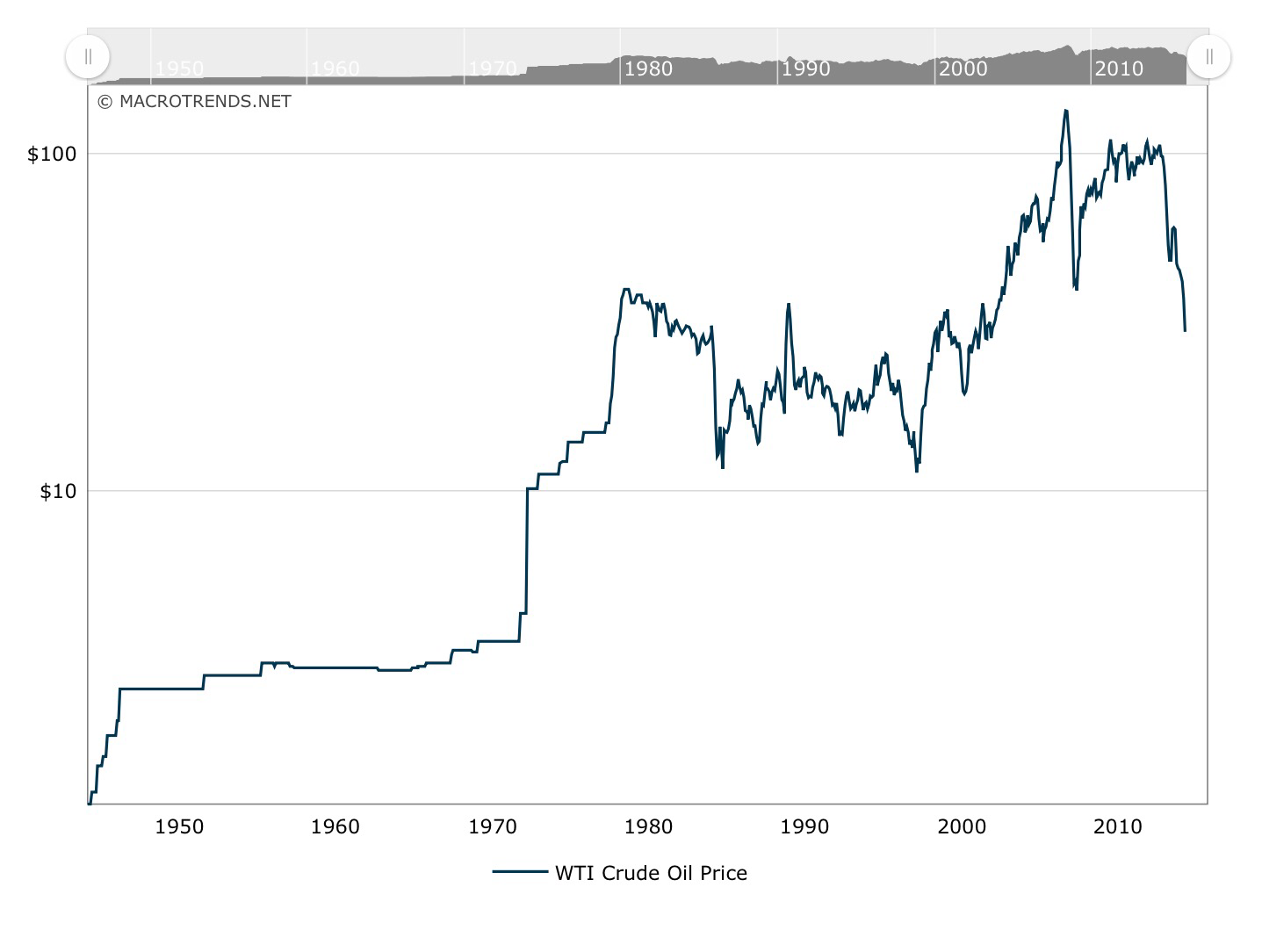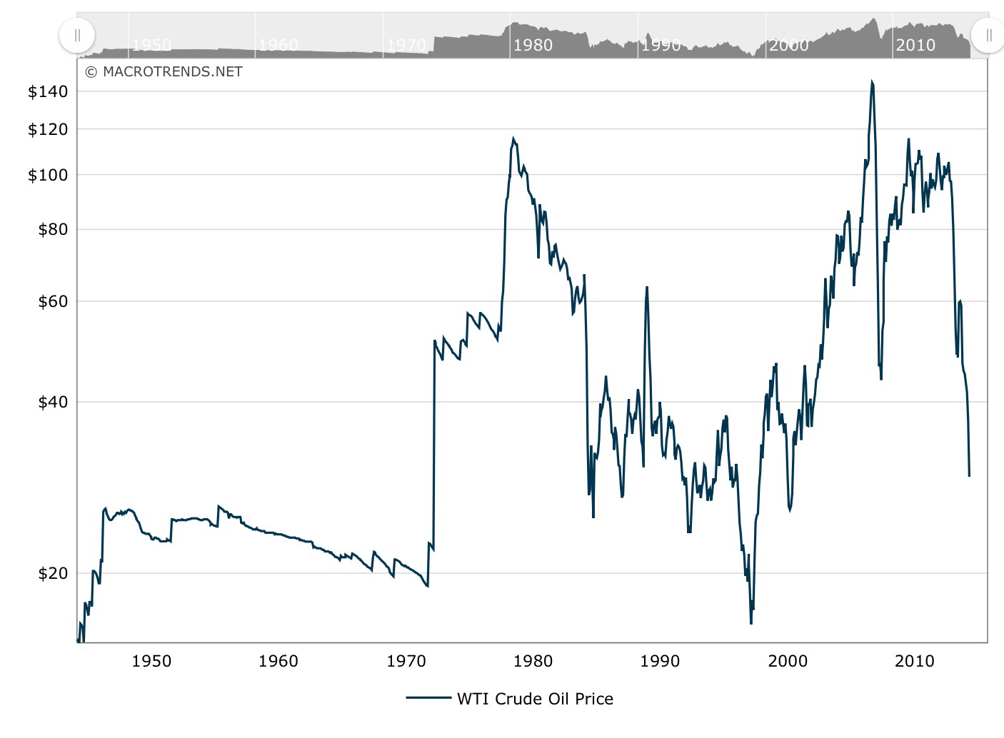 The remarkable story of oil price flucations (at least in my lifetime) are filled with politics, technology, and economic gambles. The first I remember was the Arab Oil Embargo of the early 70s. Crude oil rocketed from 3$ a barrel to $12 in the first of historic oil “shocks”.